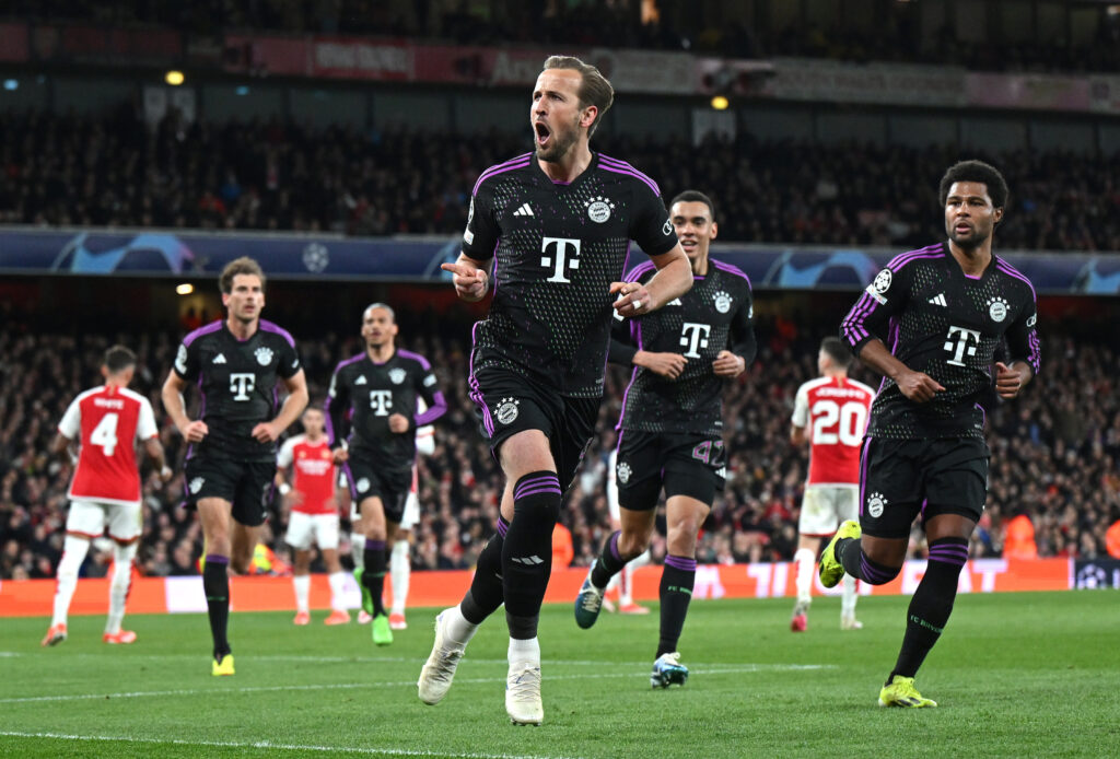 A legutóbbi Harry Kane-gólöröm a 15 közül, amelyet Arsenal elleni meccsen mutathatott be. A találat az Emiratesben született a tavaly áprilisi BL-negyeddöntőn, tizenegyesből, Azzal vezetett a Bayern 2–1-re, de később az ágyúsok Trossard révén döntetlenre mentették a találkozót… (Fotó: Getty Images)