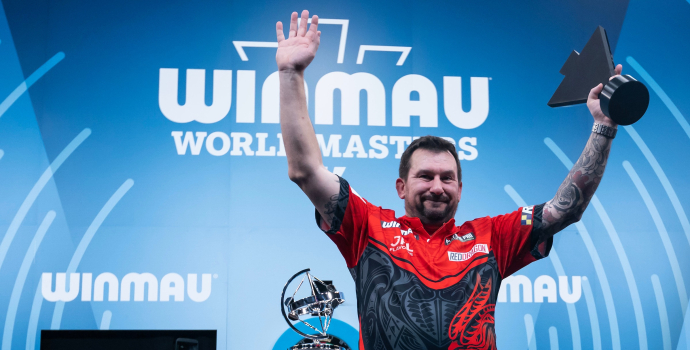 Jonny Clayton egyik kedcenc versenye a Masters: a 2021-es győzelem és a '22-es elődöntő után tavaly is a fináléig menetelt Milton Keynesben (Fotó: pdctv.com)