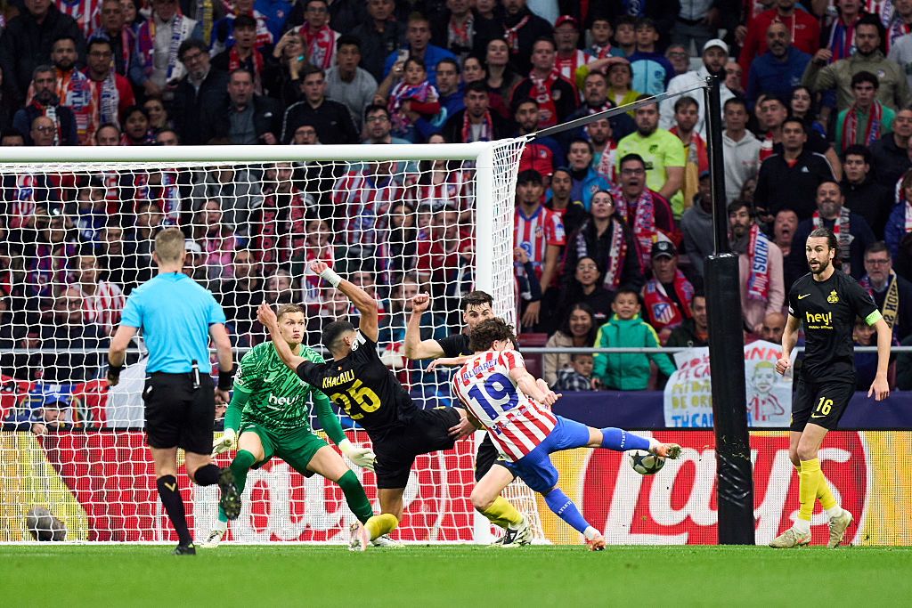 Világbajnok gól belga kapuban. Az Atlético argentinja Julián Álvarez betalált az Union SG kapujába novemberben, s ugyanerre készül a Bruges ellen februárban is (Fotó: Getty Images)