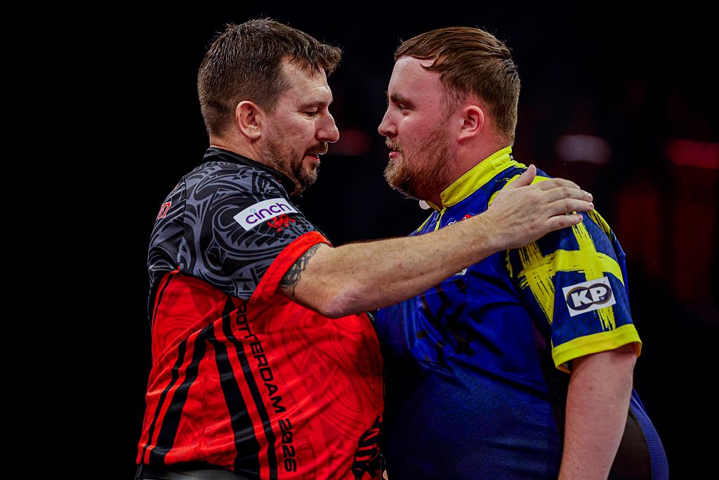 A harmadik negyeddöntőben a világelső és –második helyezett „druszapár”, Luke Littler és Luke Humphries csapnak össze egy döntő párharcban a rájátszásért.